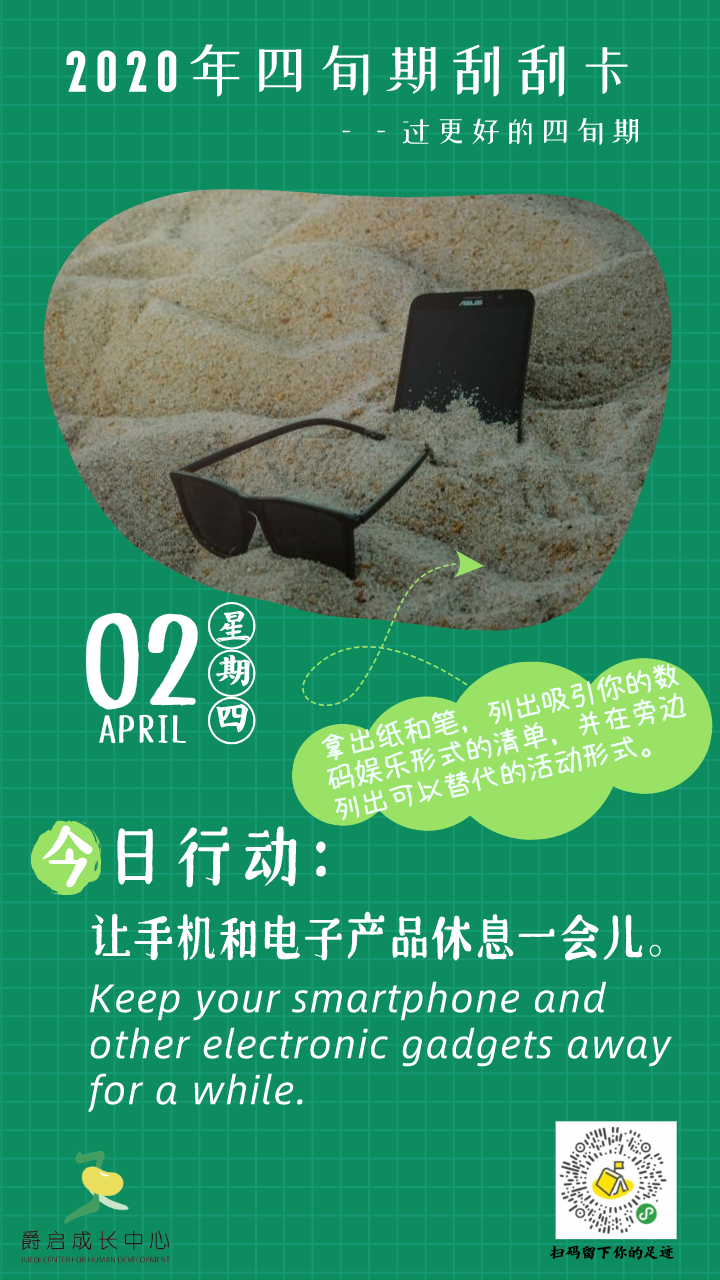 Day37,今天是刮刮卡的第三十七天:“让智能手机电子产品休息片刻拿出纸笔,写下最吸引你的数码娱乐清单,并列出可替代的活动形式(如:看书;复习5个单词;打电话给谁)。想用时,就选一项活动替代。”