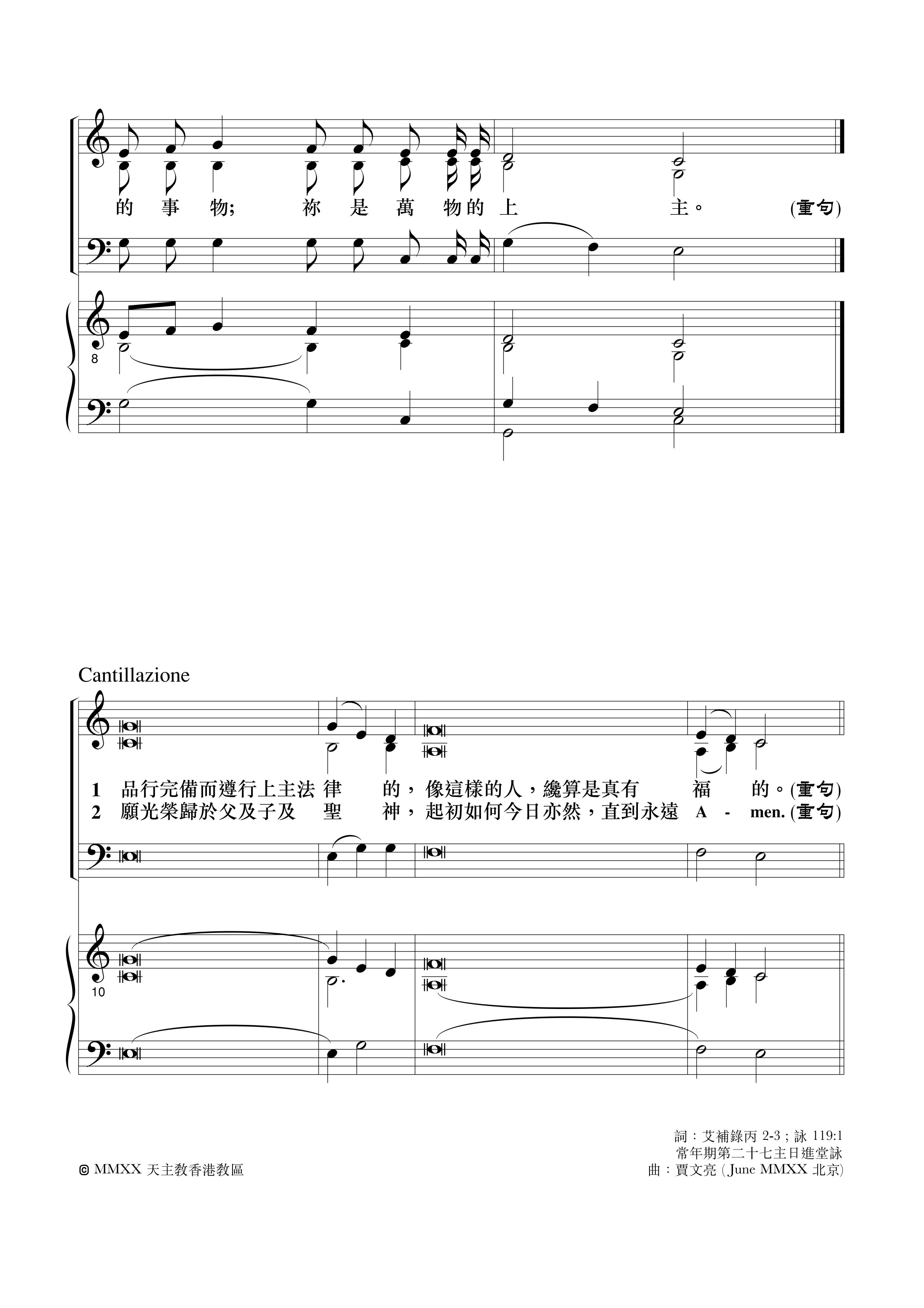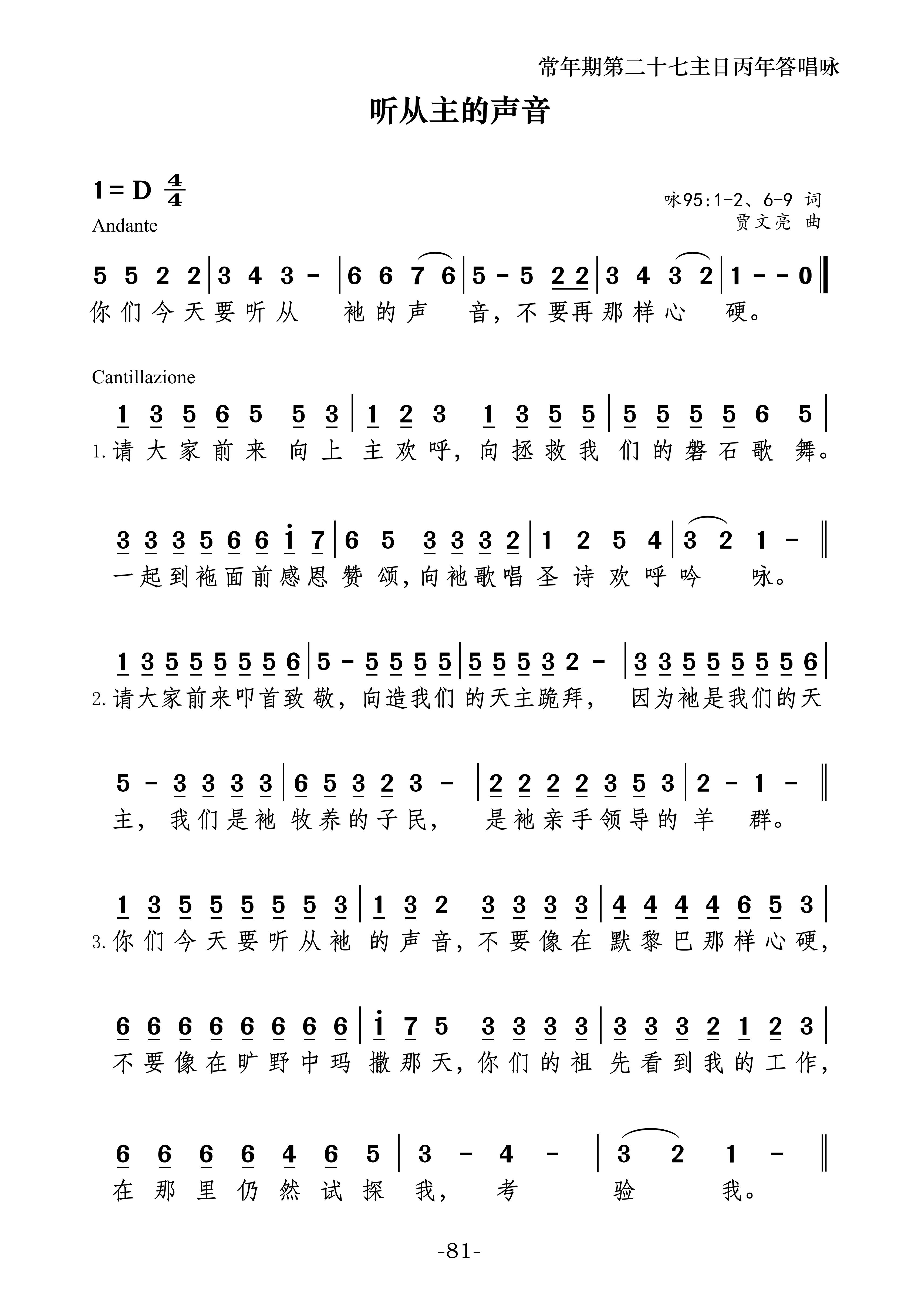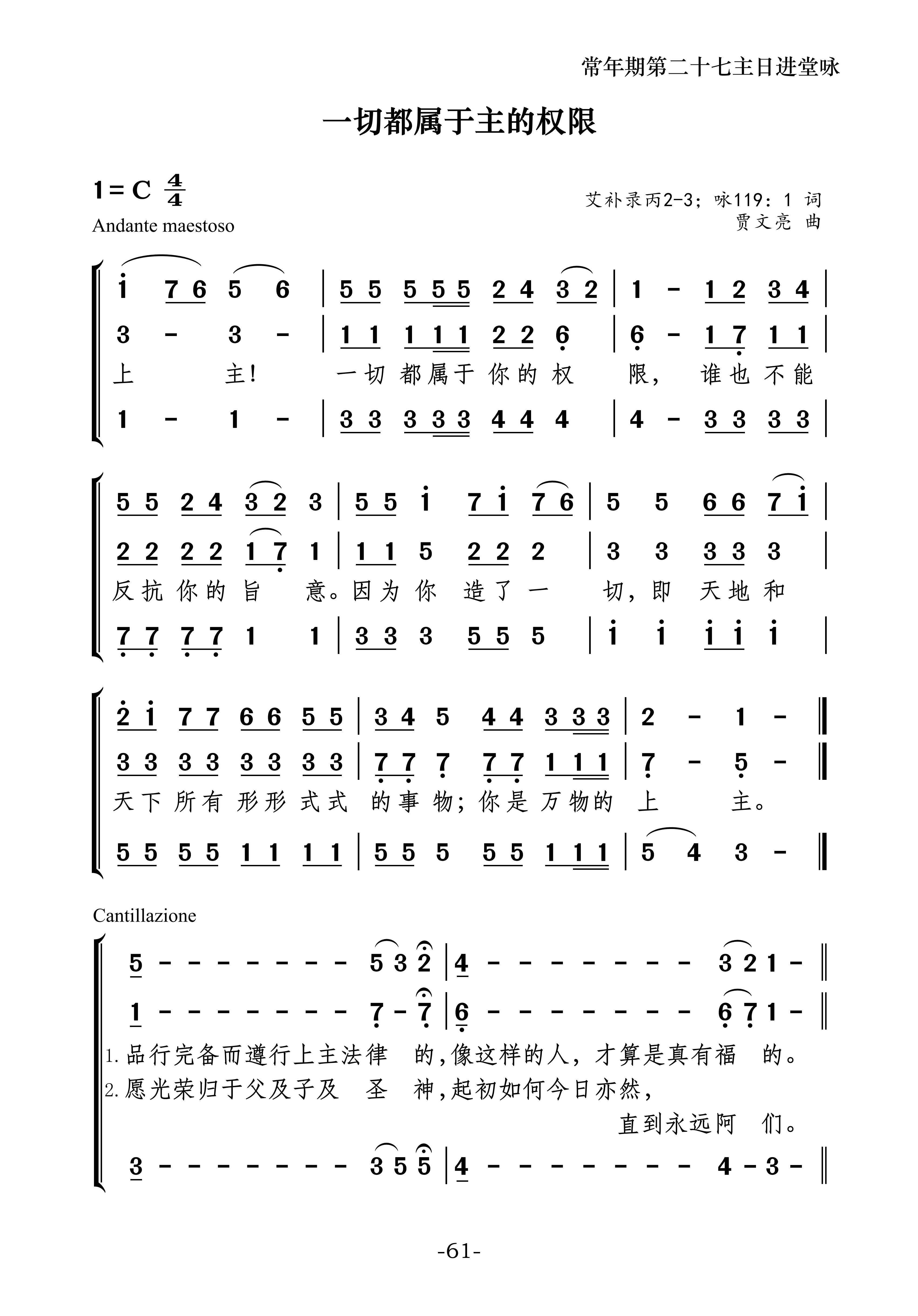 礼仪用曲 | 丙年常年期第二十七主日-贾文亮 发布日期:2025-09-28 | 作者:小驴驹工作室 ·进堂咏· 常年期第二十七主日进堂咏专辑:全年进堂咏作者:小驴驹工作室 ·答唱咏· 常年期第二十七主日丙年答唱咏专辑:答唱咏·丙年作者:小驴驹工作室 如您需要保存歌谱,请长按歌谱进行保存。 因工作量庞大,我们也需要您的支持与鼓励。感谢!