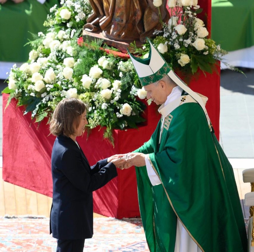 每位要理教员从教宗手中接过十字架 (@VATICAN MEDIA)