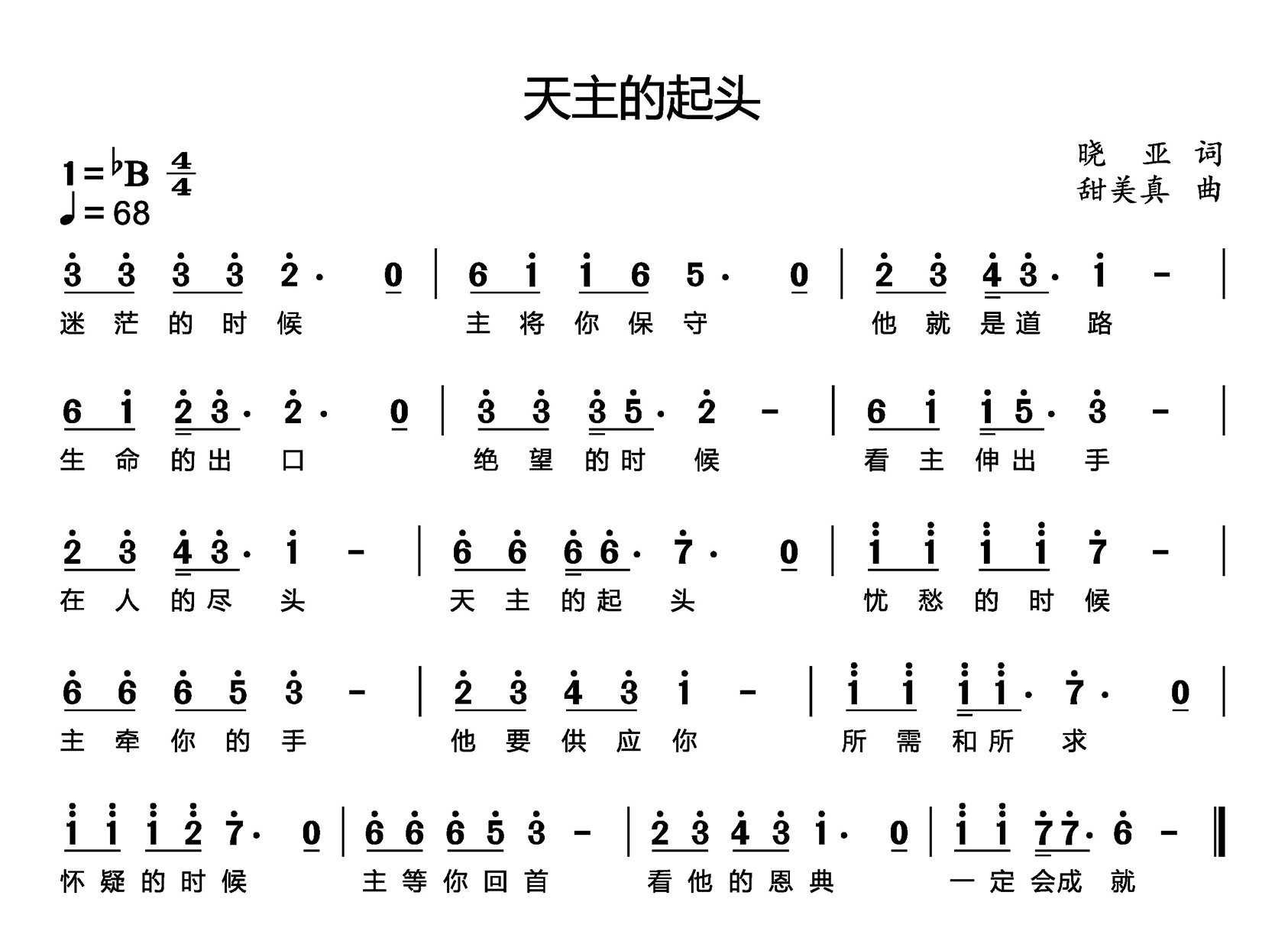 动态歌谱|《晓亚作品集|天主的起头》