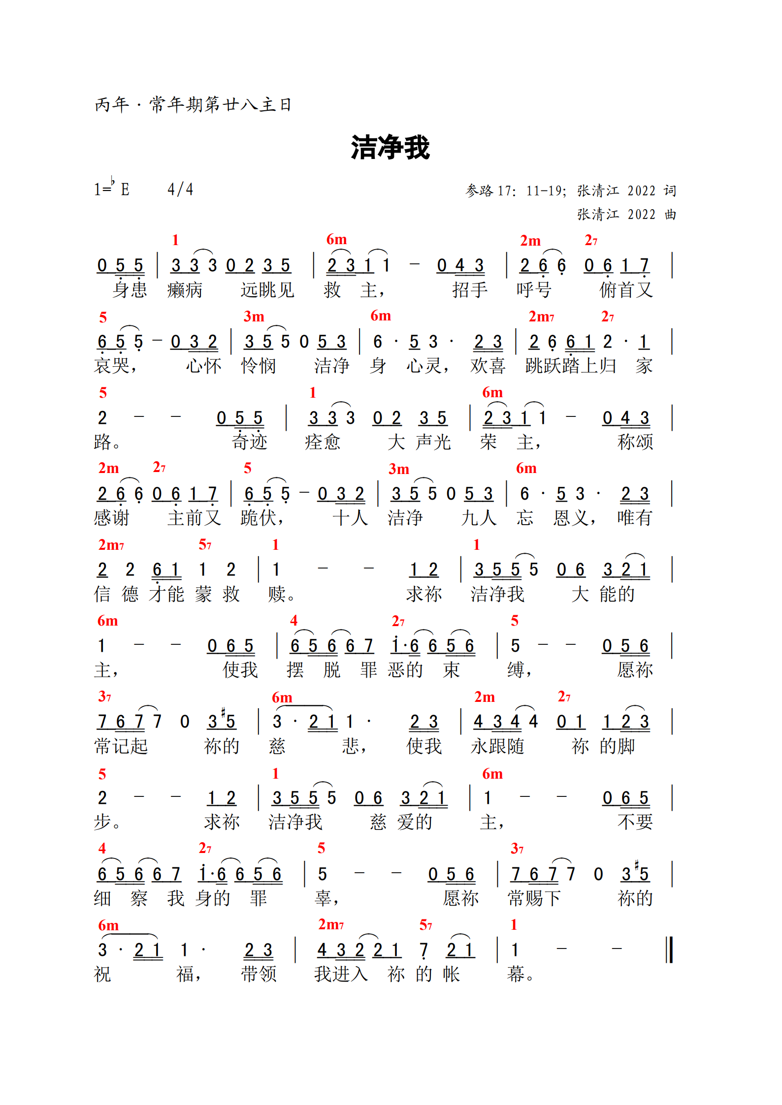 主日赞歌|《洁净我》丙年常年期第二十八主日 发布日期:2025-10-10 | 作者:仆仁文化 参路17:11-19 词/曲:张清江 编 曲:谭 艺 演 唱:谭 艺 发 行:真理文化 洁净我—丙/常年期28主日专辑:主日赞歌(丙年)作者:仆仁音乐 【歌谱】