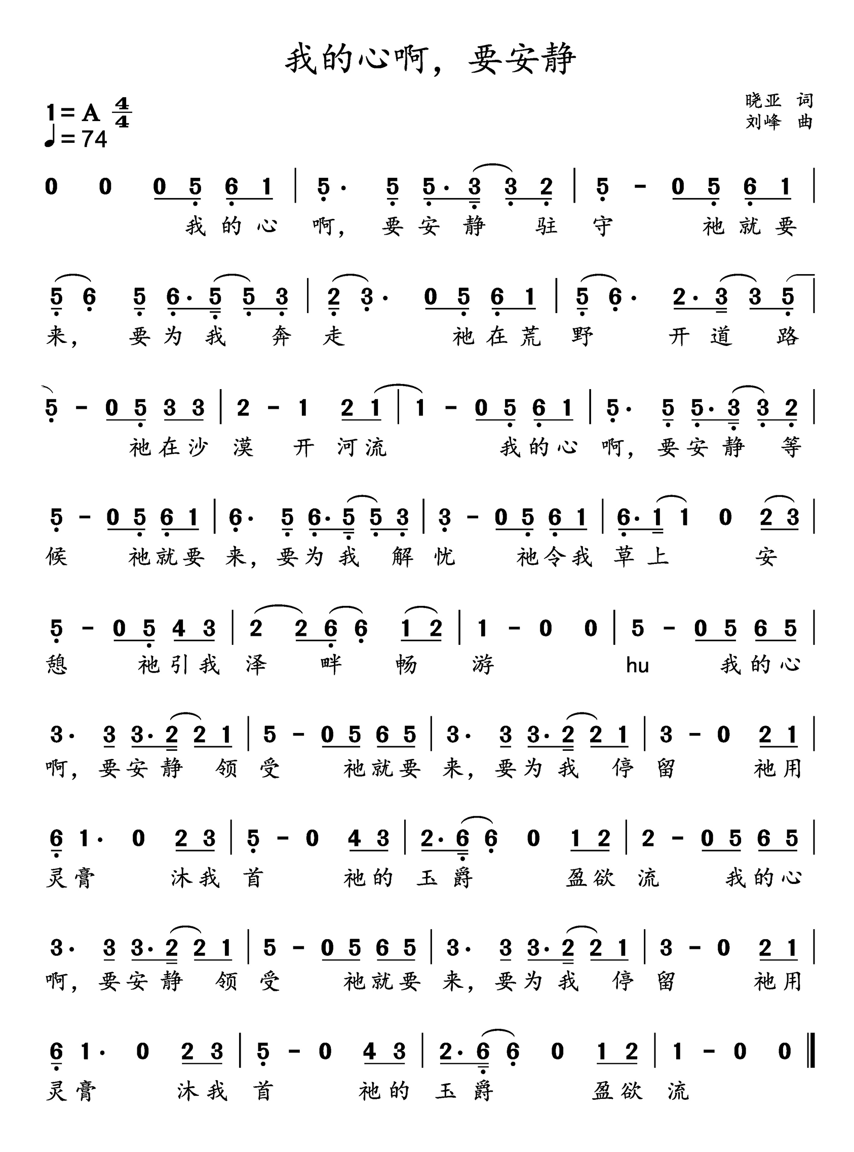动态歌谱|《晓亚作品集|我的心啊,要安静》