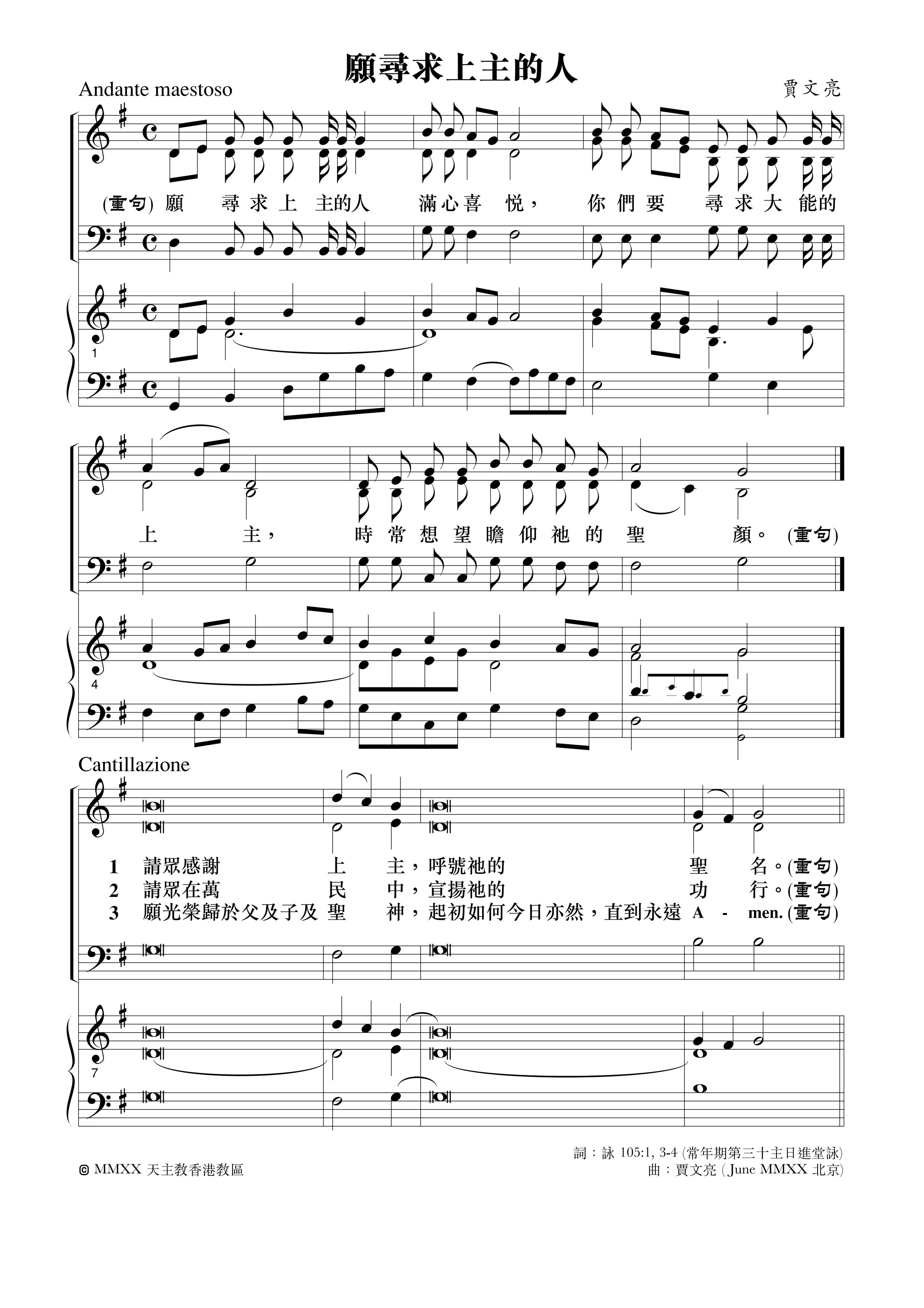 礼仪用曲 | 丙年常年期第三十主日-贾文亮 发布日期:2025-10-21 | 作者:小驴驹工作室 ·进堂咏· ·答唱咏· 常年期第三十主日丙年答唱咏专辑:答唱咏·丙年作者:小驴驹工作室 如您需要保存歌谱,请长按歌谱进行保存。 因工作量庞大,我们也需要您的支持与鼓励。感谢!
