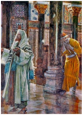 结合我们当代的生活体验,很容易会设想这样一幅画面:两个人在一间近乎空荡的教堂里祈祷(“朝拜”),法利塞人骄傲地站在前方,税吏则谦卑地躲在后方的阴影中。但实际情形绝非如此。当耶稣说有两个人上圣殿去祈祷时,祂想让人们联想到的是耶路撒冷圣殿——在那里,“上殿祈祷”并非指私人的虔敬朝拜,而是加入信众团体,参与下午的赎罪祭礼仪。