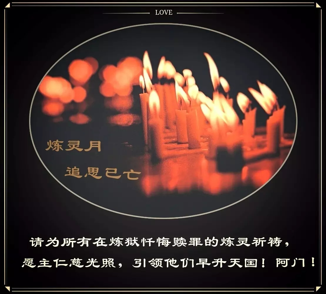 今天,我们缅怀我们已故的亲友。我们感谢主赐给我们礼物,把他们放在我们身边。我们为他们及所有的已故者祈祷;为那些因认识基督和祂的福音而拥有快乐的人祈祷,也为那些还没有被复活之光所启迪的人祈祷,因为他们还没有生活在希望之中。我们希望我们的爱能惠及所有已故者。
