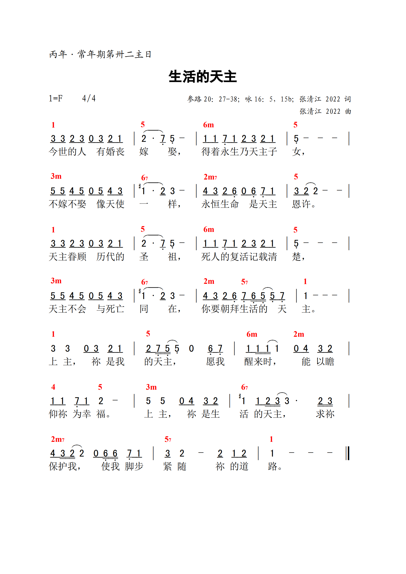 主日赞歌|《生活的天主》丙年常年期第三十二主日 发布日期:2025-11-09 | 作者:仆仁文化 参路20:27-38;咏16:5,15b 词/曲:张清江 编 曲:谭 艺 演 唱:谭 艺 发 行:真理文化 生活的天主—丙/常年期32主日专辑:主日赞歌(丙年)作者:仆仁音乐 【歌谱】