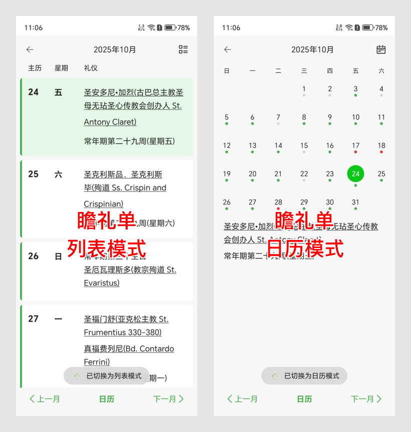 问5: 瞻礼单列表形式不便按日期查看节日,建议增加日历形式